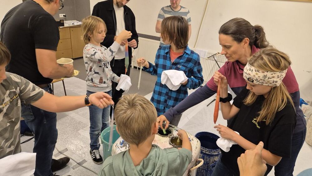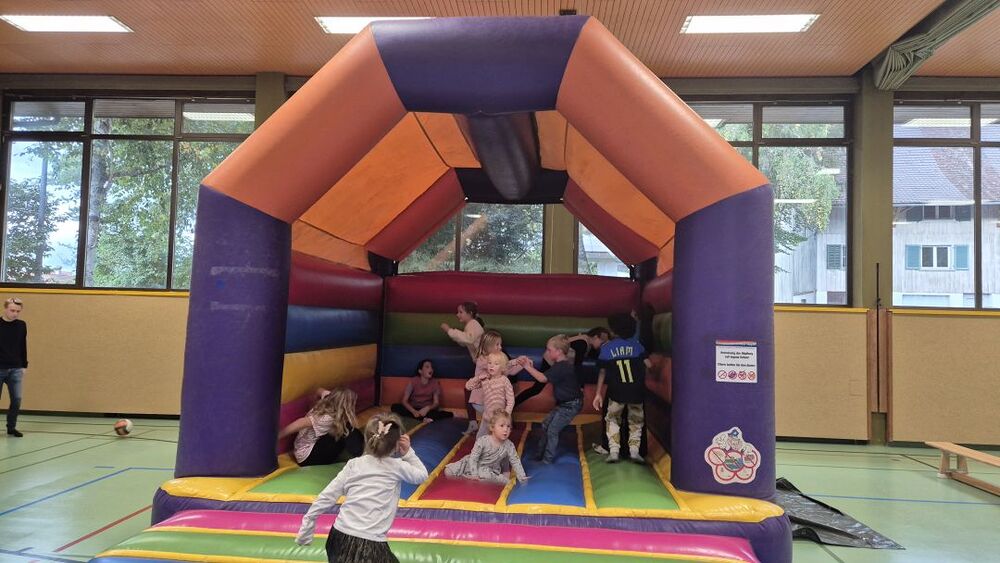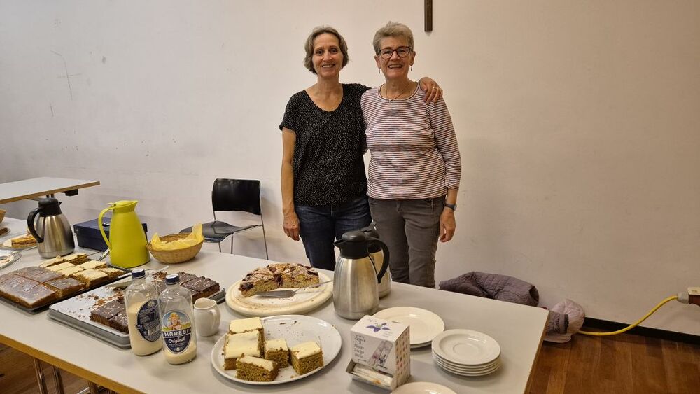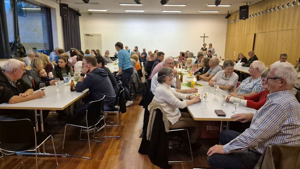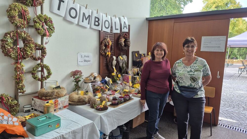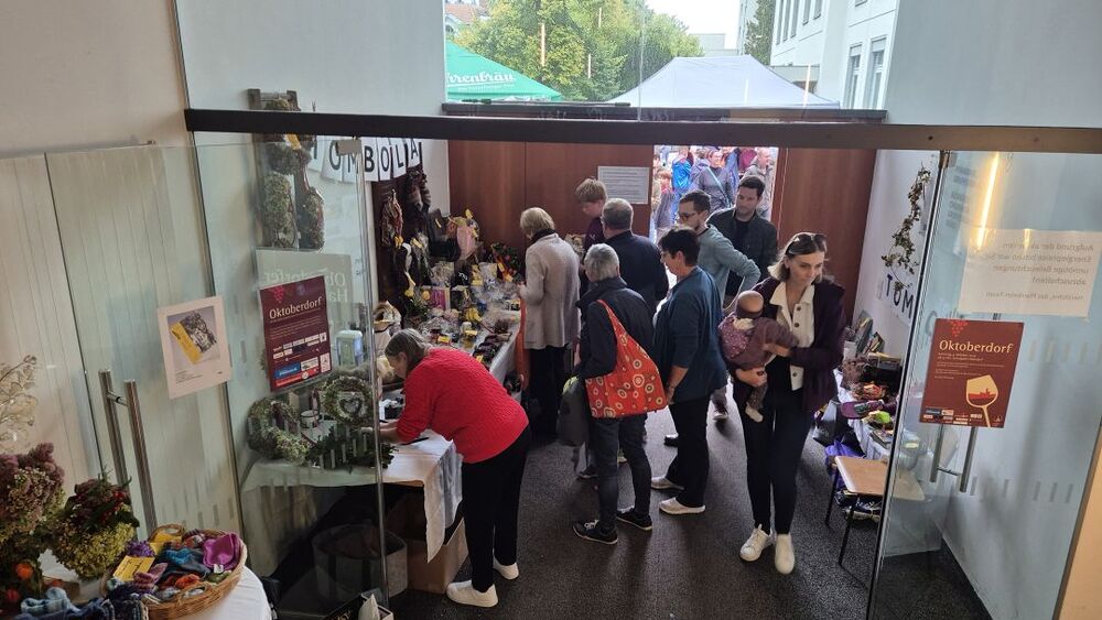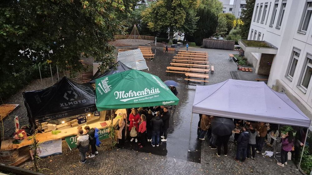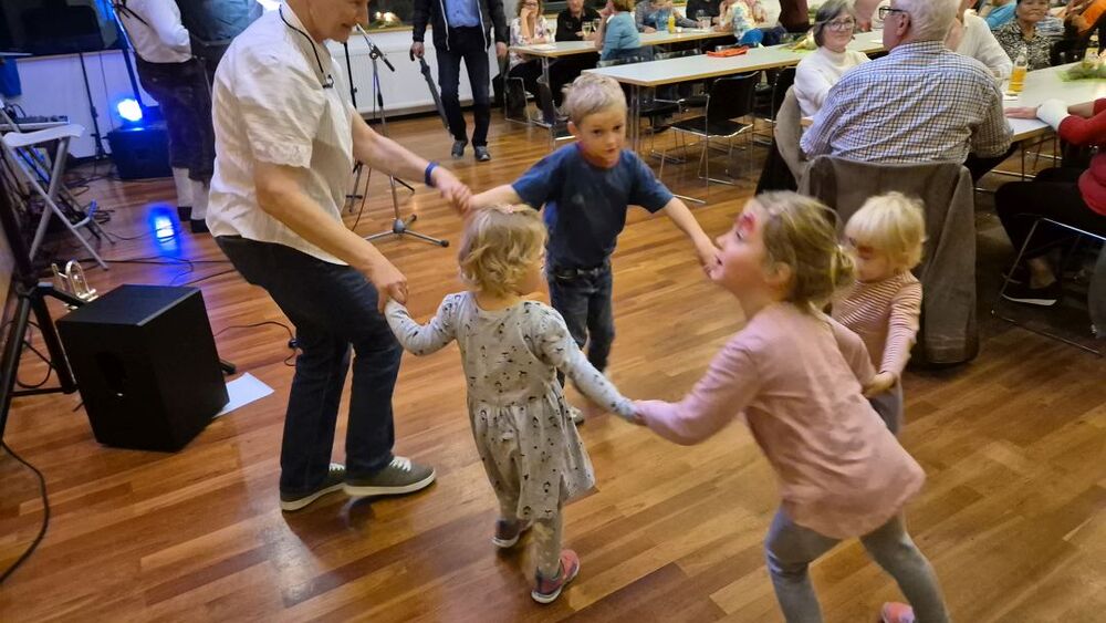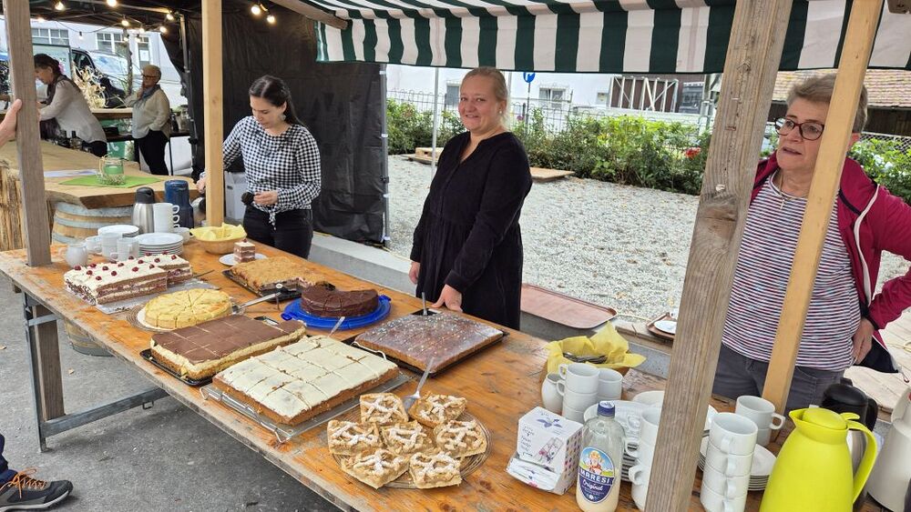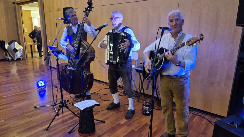 Vielleicht sollten wir Petrus zum zweiten Kirchenpatron erheben, damit er nicht so wankelmütig mit dem Oktoberdorfwetter umgeht: 2022 Regen, 2023, schön, 2024 nicht ganz trocken, 2025 ziemlich nass. Aber wir Oberdorfer lassen uns nicht beirren. Trotz miserabler Prognose bereiteten wir alles für den 4. Oktober 2025 wie gewohnt am Schulplatz vor und trugen gleichzeitig Vorsorge für einen Umzug ins Pfarrheim. So kam es dann auch. Etwa zwei Stunden konnten wir draußen feiern, dann kamen die ersten Regenschauer und allmählich gaben selbst die (meisten) Hartgesottenen auf und übersiedelten an die Ersatzbar ins Foyer und in den Pfarrsaal. Es wurde auch so wieder ein tolles Fest mit guter Stimmung, vielen Köstlichkeiten aus Keller und Küche und nettem Kinderprogramm. Dem Vernehmen nach gingen die letzten Gäste gegen Mitternacht nur ungern nach Hause. Einige Frauen steuerten Selbstgebasteltes und eine Tombola mit vielen Preisen bei und in der Bibliothek gab es Lesestoff zu Flohmarktpreisen. Musikalisch mussten wir wegen des angesagten Regens leider auf die 60er Musikanten verzichten, aber das Süasslar-Trio entschädigte mit feiner Unterhaltungsmusik im Saal und lockte etliche Tänzerinnen und Tänzer aufs Parkett.